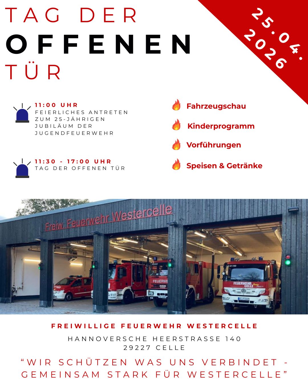 Hier finden Sie verschiedne Informationen, z. B. Hinweisen ihrer Ortsfeuerwehr Westercelle (alles über den Altpapiercontainer oder Aktionen,/Veranstaltungen, Wetterwarnung, PegelOnline und mehr.
